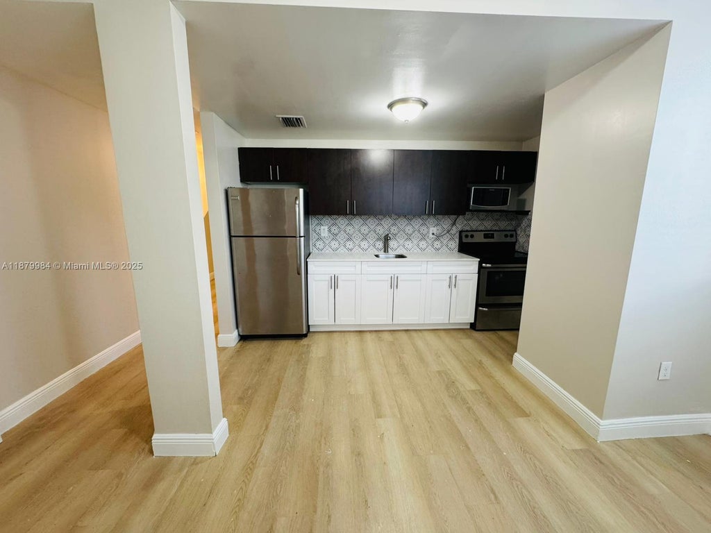 Beautiful and Cozy Remodeled 2 bed/1 bath. Move in with only $1000 Security deposit Available to NEW Applicants ONLY, and subject to landlord's review of criminal, credit, income and eviction records. SS Appliances, washer & dryer inside the apartment, Laminated wood floors, Central AC, Impact Windows, Granite Counter Tops & Window Treatments. Minutes away from Coral Gables, Downtown Miami, Brickell, Miami International Airport, & Marlins Stadium.