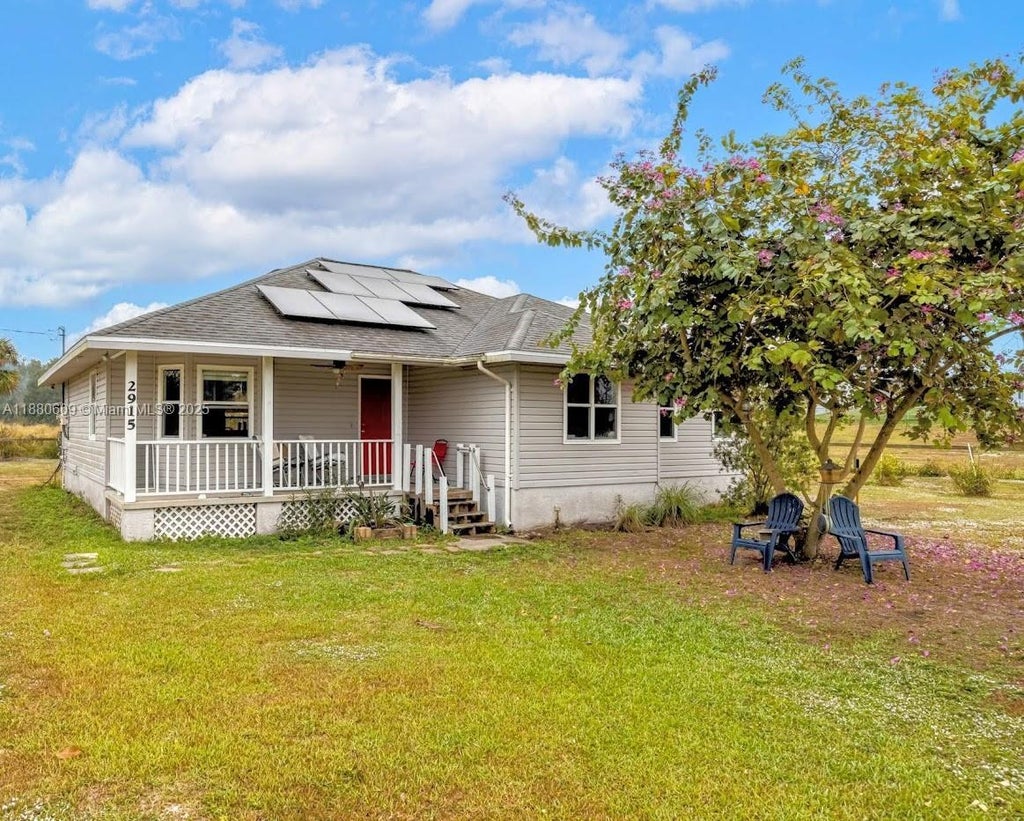 Centrally located—just 1.5 hours from Miami/Ft. Lauderdale or Ft. Myers—this charming home offers the ultimate waterfront lifestyle! Situated directly across from the Ortona boat ramp, you’ll enjoy access to the Caloosahatchee River, Intracoastal Waterway. Inside, you’ll find a spacious open-concept great room and an updated kitchen featuring a gas range, newer cabinetry, pantry, and appliances all less than four years old.. Energy-efficient solar panels keep electric costs low. Outdoors, the fully fenced property is loaded with extras—including a massive 36' x 24' pole barn with electric service, plus a versatile 34' x 11' he/she shed with electric, water, and A/C—ideal for hobbies, a workshop, or your own private getaway.