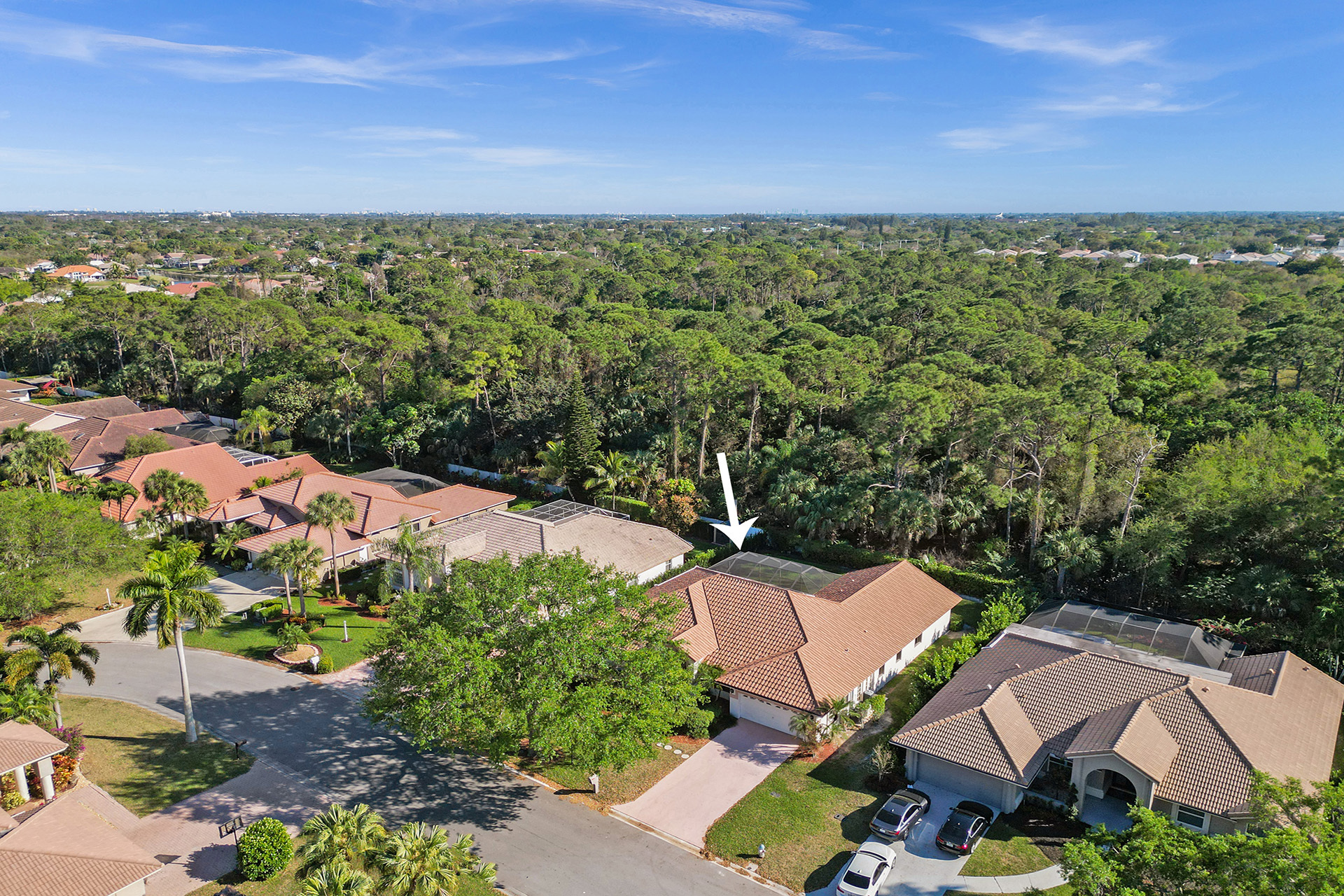 Prestigious CARRIAGE POINTE ESTATE home with 4 bedrooms & 2 bathrooms w/ lovely screened in patio and pool in 24 HOUR GUARD GATED COMMUNITY. Expansive primary suite w/ 2 closets. This already spacious home feels even larger with its vaulted ceilings. Sits on a cul de sac with minimal car activity. Kitchen has solid wood cabinets and granite counter tops w/ tranquil view of pool and backyard. Across from the kitchen is a flex room for family, kids playroom, etc. Both bathrooms have dual sinks. Large windows let in tons of natural light. METAL ROOF that looks like clay tile. AC is 2021. Brand NEW CARPET in 3 rooms. Enjoy pure backyard privacy as the lot backs to Sandy Ridge Preserve. This home was well cared for and clean as a whistle and ready for you to make it your own