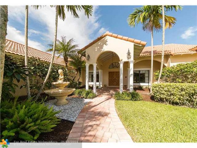 Beautiful 1.09 acre estate with an amazing back yard. A perfect home for entertaining! The great room features a built-in wet bar & high vaulted ceilings. Remodeled kitchen with gorgeous wood cabinets, granite counter tops, pot filler over the stove, double wall ovens, center island & built in pantry. The 2nd bedroom is perfect for an in-law suite (28x13 with a private bathroom). 2008 tile roof! 4 a/c units & paver circular driveway. Large covered patio with built-in wet bar, refrigerator & fenced pool.